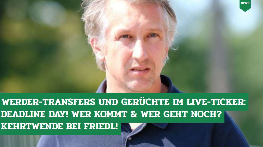 Fazit zum Deadline Day bei Werder Fazit zum Deadline Day bei Bremen. 30082021 buten un binnen sportblitz Radio Bremen Fernsehen. Auch diesen Deadline Day des Bundesliga-Transfermarkts haben wieder alle.